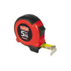 Carcasa ABS antichoc, recubrimiento antideslizante. Cinta de acero esmaltado con recubrimiento nilón antireflex. Gancho magnético reforzado. Freno de rebobinado y botón de bloqueo. Homologado CE. Clase de precisión II. Caja expositor de sobremesa. 3 m. Cinta 19 mm.