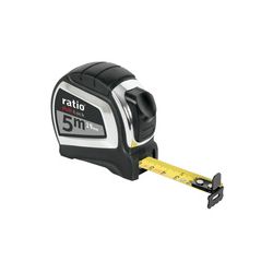 Carcasa ABS recubrimiento antideslizante. Cinta con sistema de bloqueo automático. Cinta numeración doble cara con revestimiento nylon antireflex. Cinta bicolor amarilla/blanca. Clip para cinturón. Gancho doble. Homologado CE. Clase precisión II. Caja expositor sobremesa. 5 m. Cinta 19 mm.