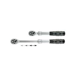 Profesional. Carraca reversible 72 dientes. Acero cromo-vanadio satinado. Sistema de bloqueo y expulsor Locksystem. Anilla de seguridad. Empuñadura ergonómica deslizante. 3/8 x 215-315 mm.