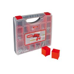 Asa ergonómica. 11 cubiletes removibles. Hueco para candado. 31 x 27 x 6 cm.