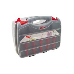 Doble cuerpo. Asa ergonómica. Tabiques modulares. Hueco para candado. 38 x 29 x 8 cm. 30 tabiques