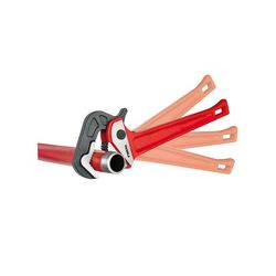 Herramientas autoajustables para apriete rápido de tuberías: a mayor fuerza, mayor par de apriete de la mordaza. Mandíbulas en acero cromo-vanadio y mango de hierro fundido. Diseño y construcción sólido y robusto. Se ajusta automáticamente a los diferentes tamaños de tuberías. 12 - 300 mm. Ø tubos 22 - 42 mm.