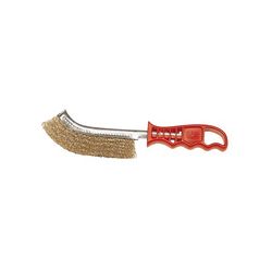 Hilo acero grueso, ondulado. Dorso metálico. Mango plástico. Púas latonadas.