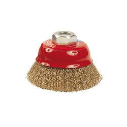 Alambre ondulado, acero latonado. Casquillo roscado M14. Ø púas 0,30 mm. diam. 75 mm.