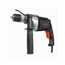 Electrónico reversible. Portabrocas automático 13 mm. Empuñadura bimaterial. Maletín de transporte con 12 accesorios, empuñadura auxiliar y tope de profundidad. Potencia: 810 W. rpm: 0-2600 ipm: 0-44800 Taladro máx. madera: 32 mm. Taladro máx. acero: 3 mm. Taladro máx. hormigón 13 mm. Peso 2,3 kg.