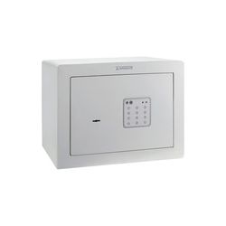 Frente acero 6 mm y cuerpo 3 mm. 6 bulones giratorios 22 mm. Apertura de la puerta hasta 120º. Bloqueo del sistema tras cinco introducciones incorrectas del código de acceso. Empotrar Exterior: 385x200-300xh270 Interior: 345x150-255xh230