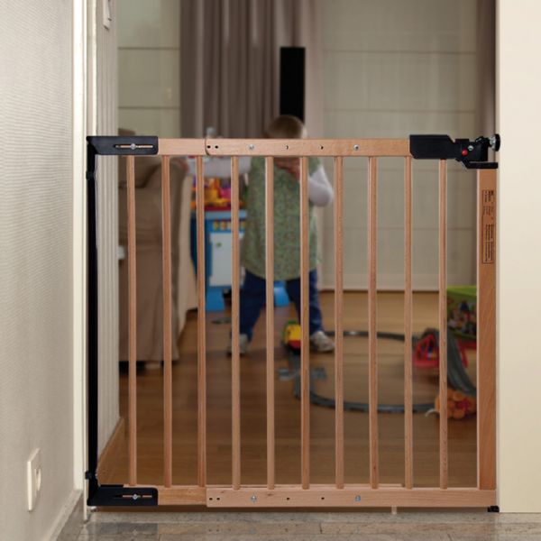 Madera haya. Cierre de seguridad. Adecuado para niños hasta 24 meses. No rma EN 1930-11:2000. Mustang barnizada. 75-114xh. 75,5 cm.
