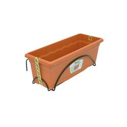 Plástico resistente a impactos. Plato antigoteo integrado y soporte metálico para balcón. 50 x 20 cm.