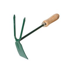Acero alta calidad pintado epoxi. Mango madera barnizada fijado con virola metálica. 4. Rastrillo 6 dientes. 300 x 110 mm.