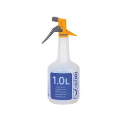 Pulverizador a gatillo pqueño para uso en interiores. Botella translúcid a y graduada. Boquilla ajustable de chorro fino a atomizador. 0,5 l.
