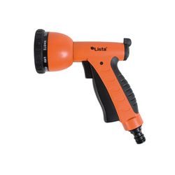Plástico ABS. Cabezal con ocho tipos de riego. Regulador salida caudal de agua. Gatillo con sistema de bloqueo. -