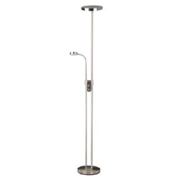 Estructura metal/plástico. Altura 180 cm. 2.700 K. Luz superior 20 W. 1.900 Im. Luz lectura 5 W. 430 Im.