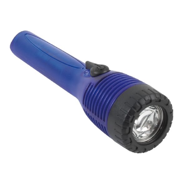 Recargable. No necesita pilas. Doble bobina de cobre. Sacudir durante 1 minuto proporciona 20 minutos de luz. Cuerpo plástico azul translúcido. Foco 1 led. 2 tipos de iluminación: fija/intermitente. Alcance foco 10 m.