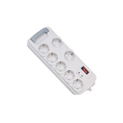 Interruptor de conexión y protector sobretensiones. Filtro de seguridad EMI/RFI. Gestor de cables, permite organizar y ordenar los cables conectados. 7 tomas