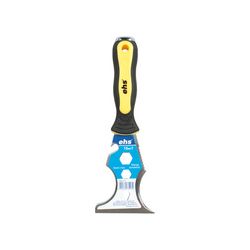 Hoja acero inox rigida, grosor 1,8 mm. Mango bimaterial antideslizante. Cabezal metálico resistente a los impactos. 75 mm.