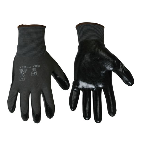 Nylón gris sin costuras, palma impregnada de nitrilo negro. Alta resistencia a la abrasión. Manipulación segura y cómoda. Protección moderada en entornos aceitosos. usos: construcción, herramientas y máquinas. Cat. II. Talla 10