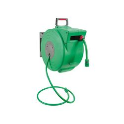 Manguera 1/2" deslizante y reforzada. Soporte mural pivotante. 2 m de manquera de conexión al grifo. Lanza de riego y conectores. 20 m. manguera.