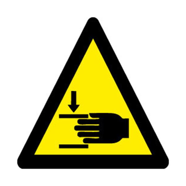 Fabricadas en vinilo adhesivo. TRIANGULAR RIESGO DE ATRAPAMIENTO. Lado 90 mm.