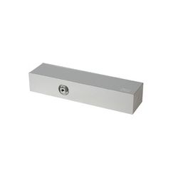 Mecanismo piñon-cremallera con frenado a la apertura integrado. Velocidad de cierre ajustable en 2 zonas diferentes y golpe final regulable. Fuerza EN 3-6. Brazo normal. Plata.
