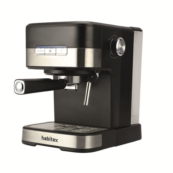 Bomba de presión de 15 bares, caldera de aleación de aluminio y tanque de agua transparente desmontable de 1.5.L. Incluye filtro dual de acero inoxidable, vaporizador de alta presión y bandeja antigoteo desmontable. Compatible con cápsulas ESE y con protección contra sobrecalentamiento y sobrepresión. Potencia: 850 W.