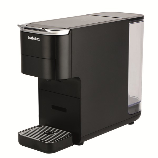 Cafetera multicápsula de 1.400-1.525 W con bomba de 20 bares y tanque de agua de 1.5l. Calentamiento rápido y control de temperatura ajustable. Compatible con cápsulas Nespresso, Dolce Gusto, ESE y café molido. Potencia: 1.400-1.525 W.