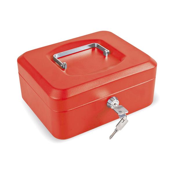 Acero pintado. Bandeja portamonedas interior incluida. 4 medidas: S, M, L, XL. 3 colores: azul, negro o rojo. Llave en bruto CIN-1. Rojo. 200x160xh.90 mm.