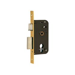 Golpe y llave, reversible. Cilindro perfil europeo. Llave estriada. Entrada 35 mm. Latonado