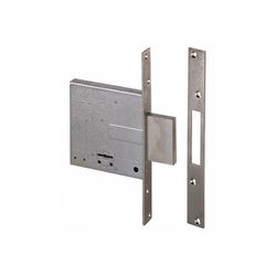 Cuatro vueltas con palanca. Frente y cerradero de acero satinado niquelado. Caja y palanca de acero. Frente de acero inoxidable. Picaporte y palanca niquelados. 2. Entrada 60 mm. Picaporte y palanca. Sin cierre superior.