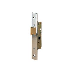 Golpe solo, reversible. Frente hierro cromado. Entrada 14 mm.