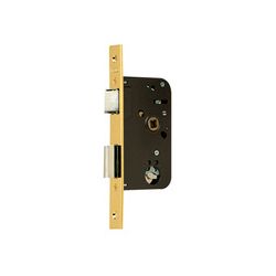 Golpe y llave, reversible. Cilindro redondo. Llave estriada. Frente latonado. Entrada 35 mm
