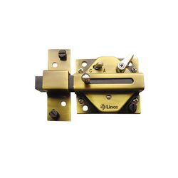 Bloqueo de seguridad, palanca de accionamiento interno. Sin cilindro. Latonado.