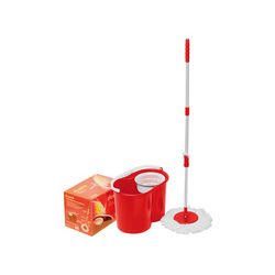 Fregona/mopa fácil de escurrir gracias a la fuerza centrífuga que deja el mocho extraseco. CONJUNTO DE FREGAR ROJO DUETT