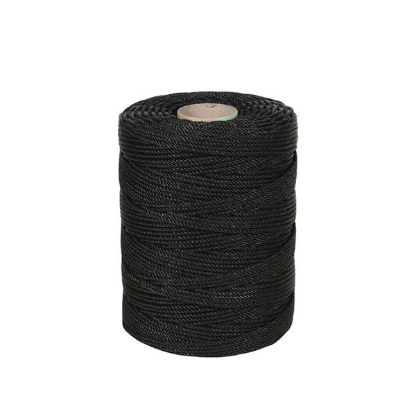 Bobina. color negro. Monofilamentos de polietileno torcidos a 3 cabos. Cuerda flexible, no absorbe agua, de reducida elasticidad, flota en el agua, desliza con facilidad sobre cualquier superficie. Aplicaciones: Guía para pasar cables telefónicos y eléctricos. ø 5 mm x 500 m.