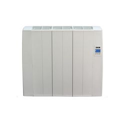 Cuerpo de aluminio extruido. Pantalla LCD. 4 programas preestablecidos: confort, anti-hielo y automático. Programación diaria y semanal por fracciones de 30 min. Fijación mural o suelo. 900 W. 52x9,6xh.57,5 cm