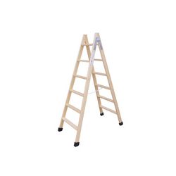 Madera doble. Larguero y peldaños de 24x60 mm. Tacos antideslizantes. 7 peldaños.