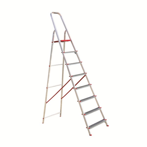 Escalera mixta. Perfil delantero aluminio 40x20mm. Peldaños acero galvanizado 80 mm. Norma EN 131. 8 peldaños.