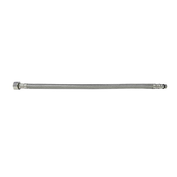 (Latiguillo). Tubo caucho sintético, trenzado con hilos de acero inoxidable. Racor latón niquelado ø 8 mm. M-H. 10/100-3/8. 37 cm.