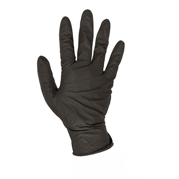 Acabado diamante que ofrece una mayor resistencia al desgaste y una mejor adherencia. Proporciona una textura adicional que mejora la destreza y reduce el riesgo de resbalones. Grosor: >0,16 mm. Más grueso que un guante desechable tradicional. Usos: galvanizados, montajes ligeros, mantenimiento de vehículos, agricultura y horticultura, limpieza y mantenimiento industrial, industria alimentaria, procesado de alimentos, tatuadores, peluquerías. EN ISO 374-1:2016+A1:2018 TYPE B, EN ISO 374 - 5: 2016. Caja 50 unid. Talla 10. Negro. 50 unid.