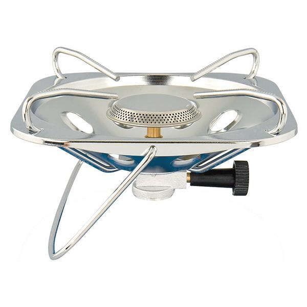 Conexión a bombona azul. Diseñada para soportar sartenes grandes y pesadas. Conexión directa a botella (no requiere regulador ni goma). Encendido manual. 3.000 W. Peso: 600 g.