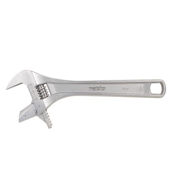 Para trabajar con tubos. Doble escala: milímetros en cara fronta, pulgadas en reverso. Llave profesional y multifunción. Para cualquier pieza cilíndrica. Abertura bocas +62% que una llave convencional. Bocas 30% más largas. Acero cromo-vanadio. Mango y boca forjados en caliente. Fabricación nacional. 12" - 300 mm. Abertura bocas: 0 - 45 mm.