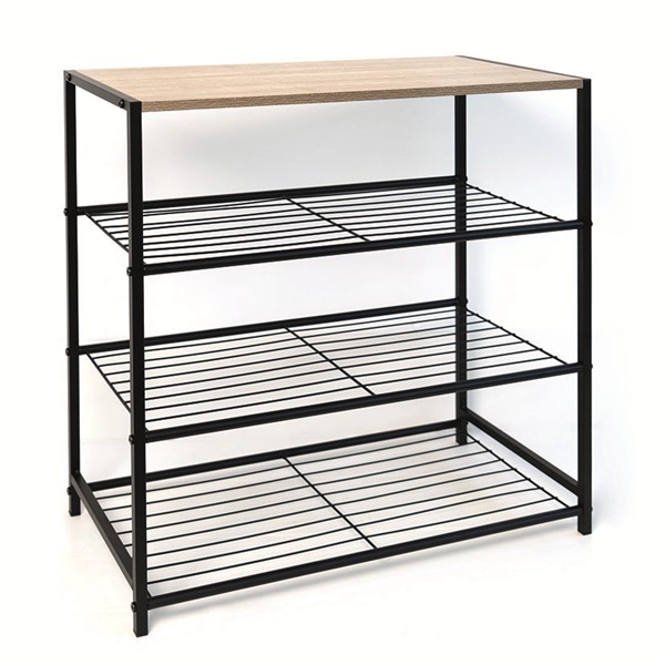 Acero lacado negro y madera MDF. Alta resistencia con recubrimiento melamínico y estructura de acero pintado. Mueble auxiliar 3 baldas 60x30xh.63,5 cm.