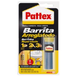 Barrita arreglatodo. Arregla, pega, fija y construye todos los materiales. Endurece en 5 minutos. Resiste hasta 50 kg/cm2. Barrita 48 gr.