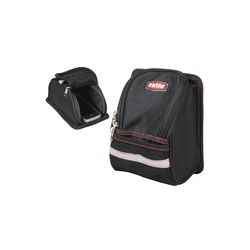 Poliéster impermeable. Construcción ligera y resistente con interior acolchado. Bolsa con doble cremallera. Bolsillo exterior con banda reflectante. Enganche universal para cinturón. 9x13x17 cm.