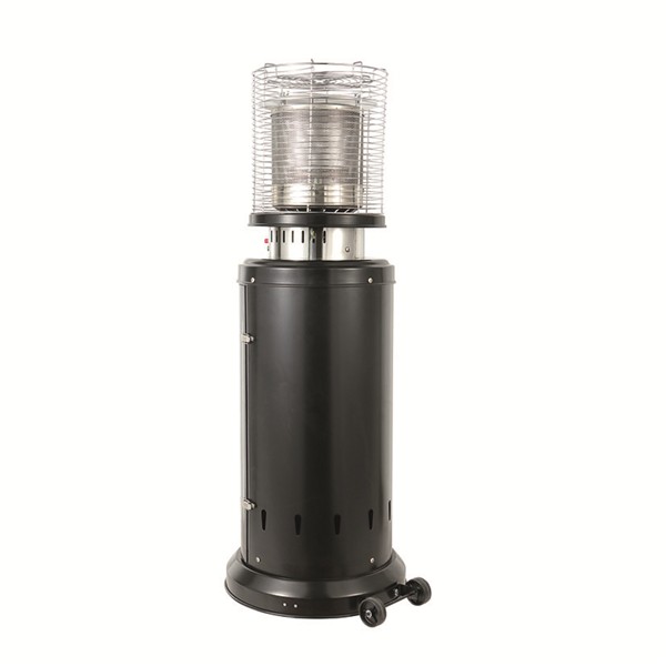 Cuerpo de acero lacado en negro. Encendido piezoeléctrico. Diseño compacto y portátil. Compatible con gas propano, butano y GLP. Incluye ruedas de transporte. Funda opcional de tela impermeable Oxford (no incluida). Regulador de gas no incluido. No precisa conexión eléctrica. 9000W. 40x40xh. 125 cm. Alcance máximo: 18m2.