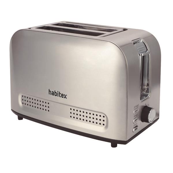 2 rebanadas. Carcasa de acero inoxidable, 7 niveles de tostado y funciones de recalentar, descongelar y cancelar. Incluye bandeja recogemigas extraíble. 750 W.