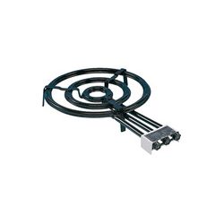 Gas butano/propano. Agujeros laterales. Mangos metálicos. Paellero, trípode soporte universal.