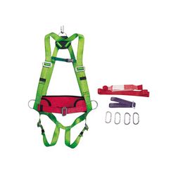 Arnés, cinturón, absorbedor energía, cinta de sujección y 4 mosquetones. EN 361, EN 358. -